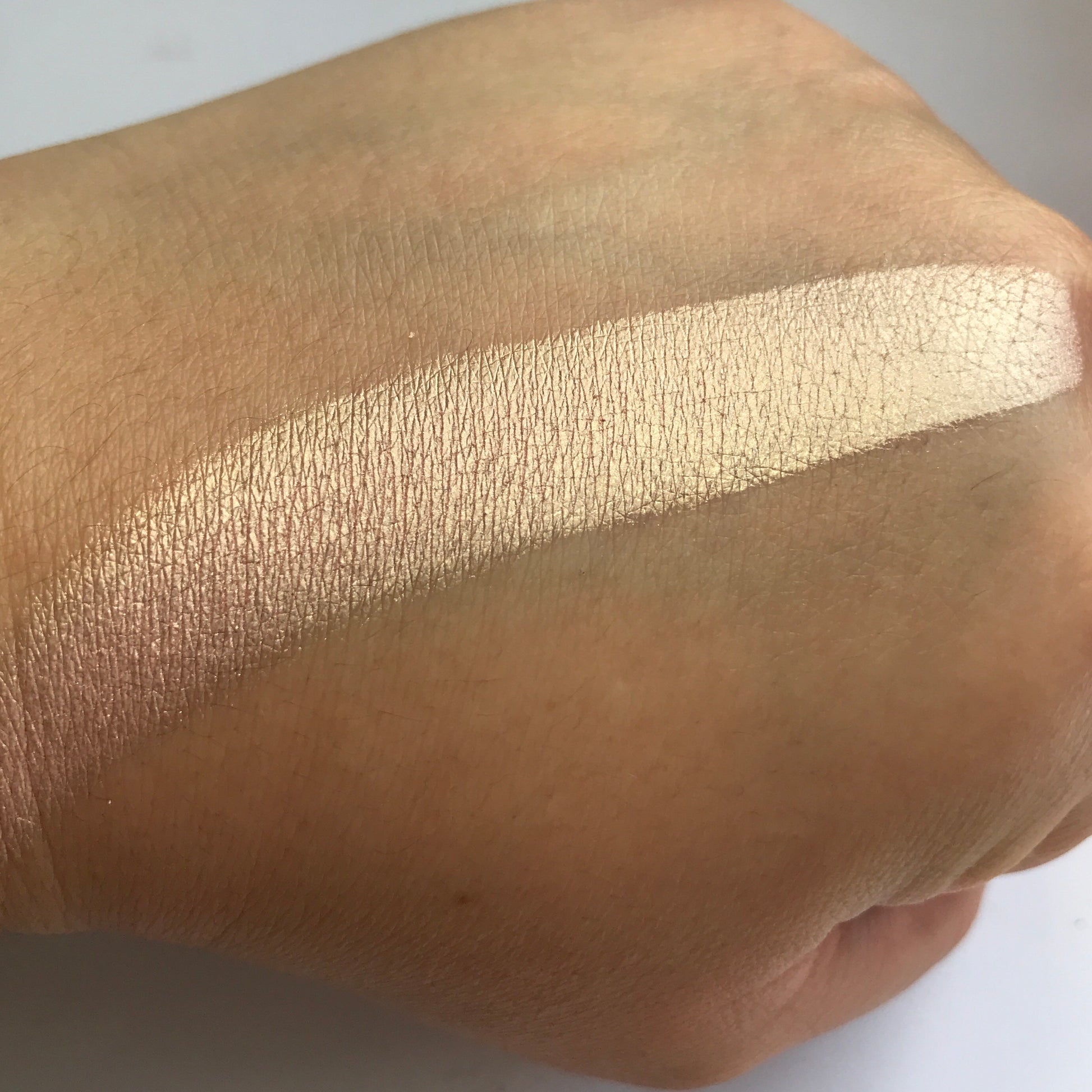 * A light creamy pink-peach highlighter. A light champagne more to the peachy side.